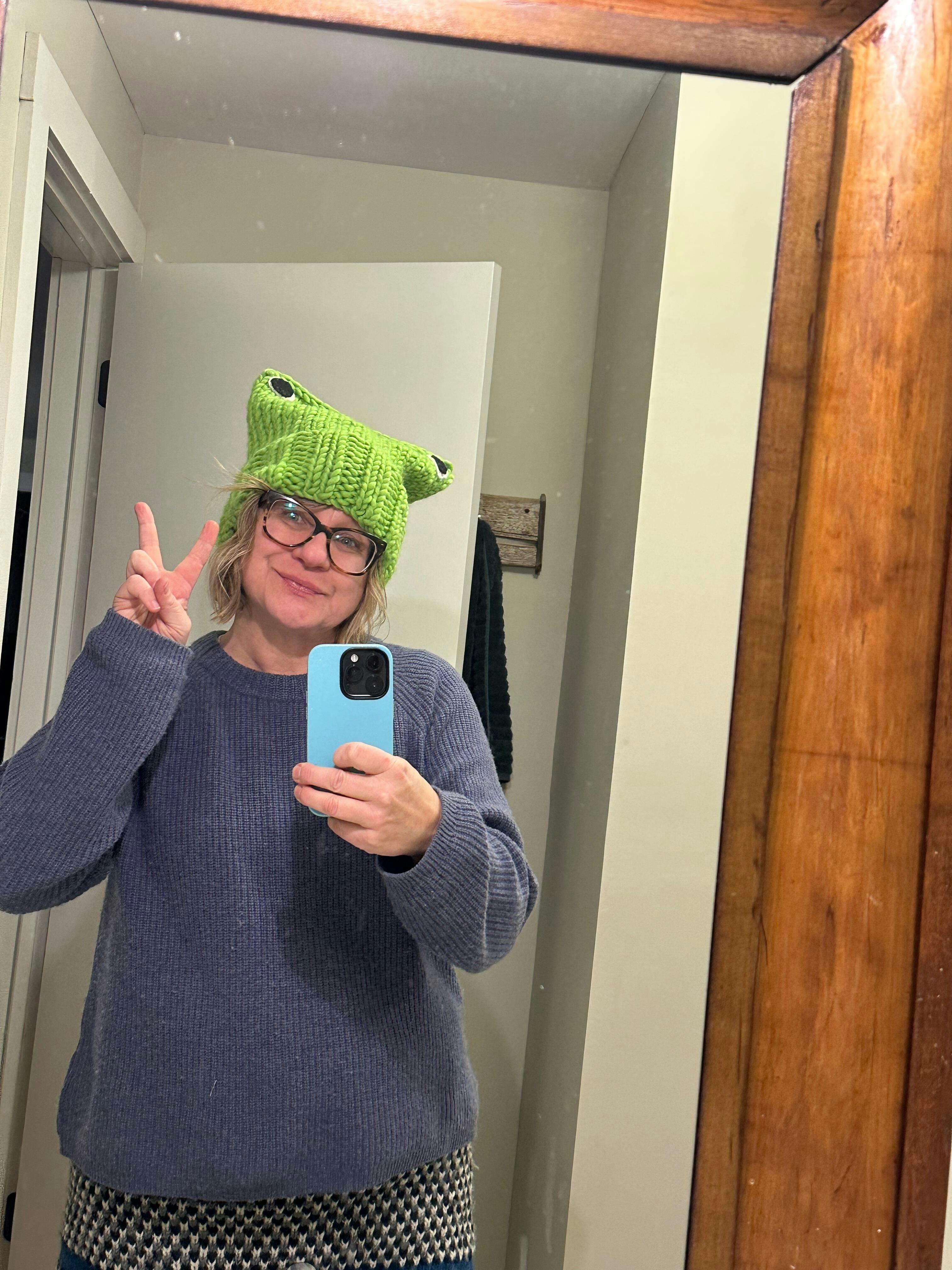 Thanks for knitting me my new favorite hat! It’s just the right amount of slouchy, kept me toasty warm at recess duty this week, and the extra chunky gloriously green yarn is so fun.